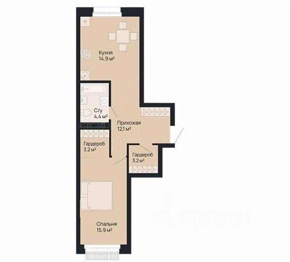 66 м² · Этаж 15 из 18