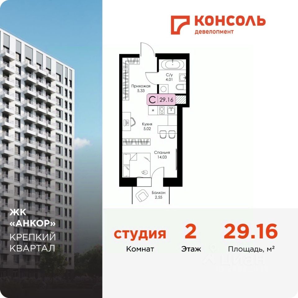 29 м² · Этаж 12 из 17