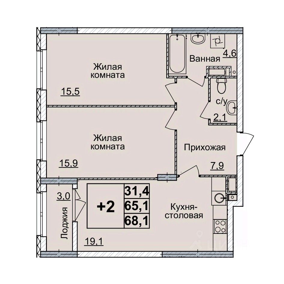 68 м² · Этаж 2 из 9