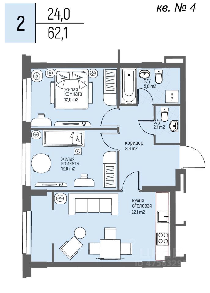 62 м² · Этаж 5 из 20