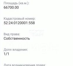 Стоимость сотки 1 000 руб/сотка!Продается земельный участок 100 соток (1ГА) с видом разрешенного использования - земли сельскохозяйственного производства.Прекрасное место для фермерства, усадьбы, тепличного комплекса. По границе участка лес. В 1,5 км протекает река Сережа.Расположение:До Нижнего Новгорода 65 км,До села Маргуша 2,2 км,До деревни Княгиновка 1,4 км,До деревни Малое Терюшево 1,5км,До деревни Осиновка 1,5 км.Проведем сделку онлайн!Ждем Вас! Записывайтесь на просмотр!