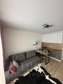 Сдаю просторную, очень теплую студию в новом доме 2023 года постройки. В квартире выполнен качественный ремонт в светлых тонах. Мебель и техника новые. Очень вместительный зеркальный шкаф для одежды, раскладной диван, кухонный гарнитур. Дом находится в пешей доступности от ТЦ Лента, Фантастика. Остановка общественного транспорта в 5 минутах ходьбы. Показ в любое удобное для Вас время.35000 + счетчикиПредоплата за 1 месяцЗалог 35 000 ₽