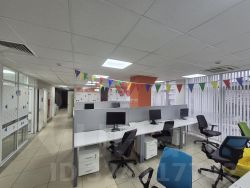 Сдается на длительный срок полностью третий этаж в новом современном офисном корпусе со всем необходимым для комфортной работы. В данный момент помещение составляет одно общее пространство+ кабинет + 2 с/узла, есть возможность построения перегородок - до 7 рабочих кабинетов. В помещении имеется система кондиционирования, интернет, система бесключевого доступа. Строение находится на закрытой охраняемой территории, где отведена парковка до 10 автомобилей. Цена указана с НДС