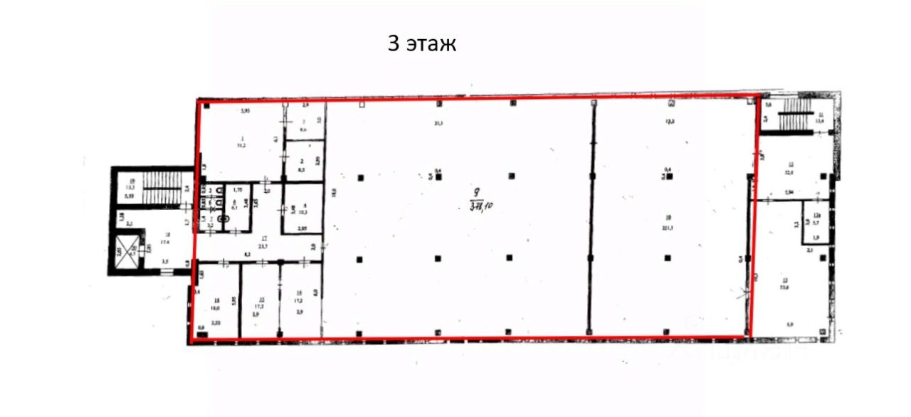 Сдаются в аренду помещения свободного назначения общей площадью 600 кв. м на 3 этаже.