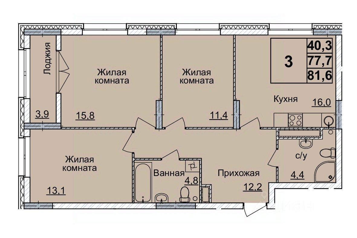 Общая площадь81 м2