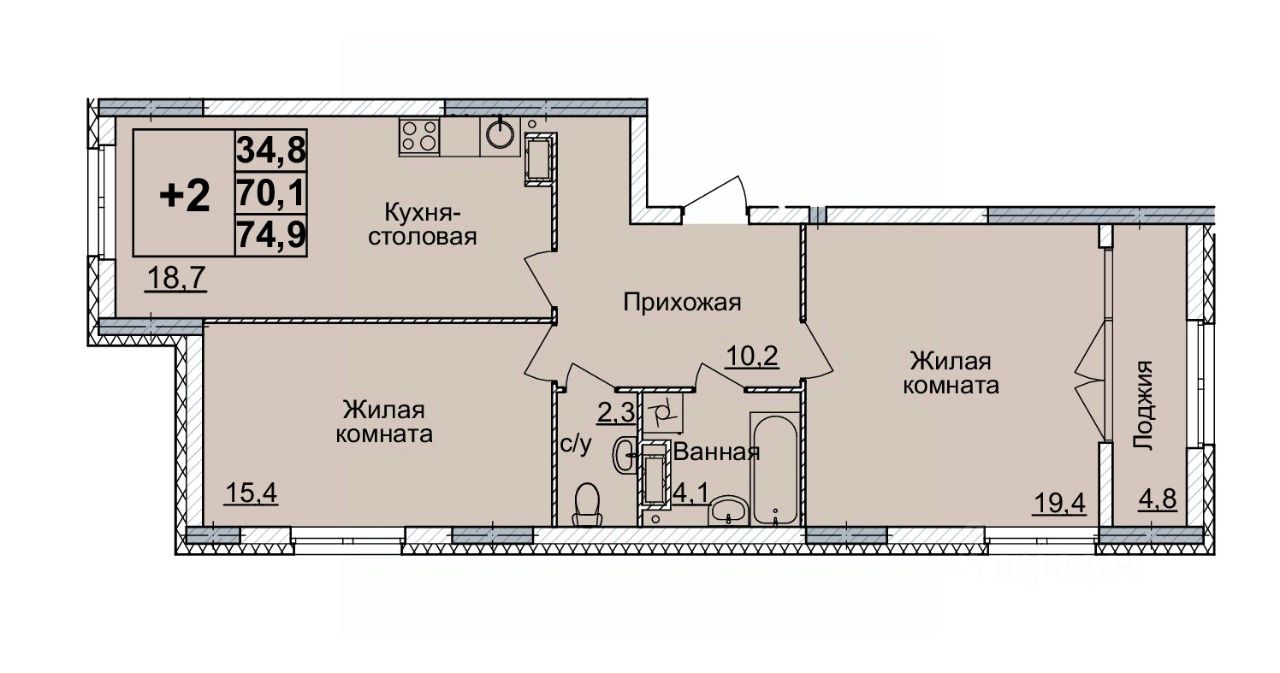 Общая площадь74 м2