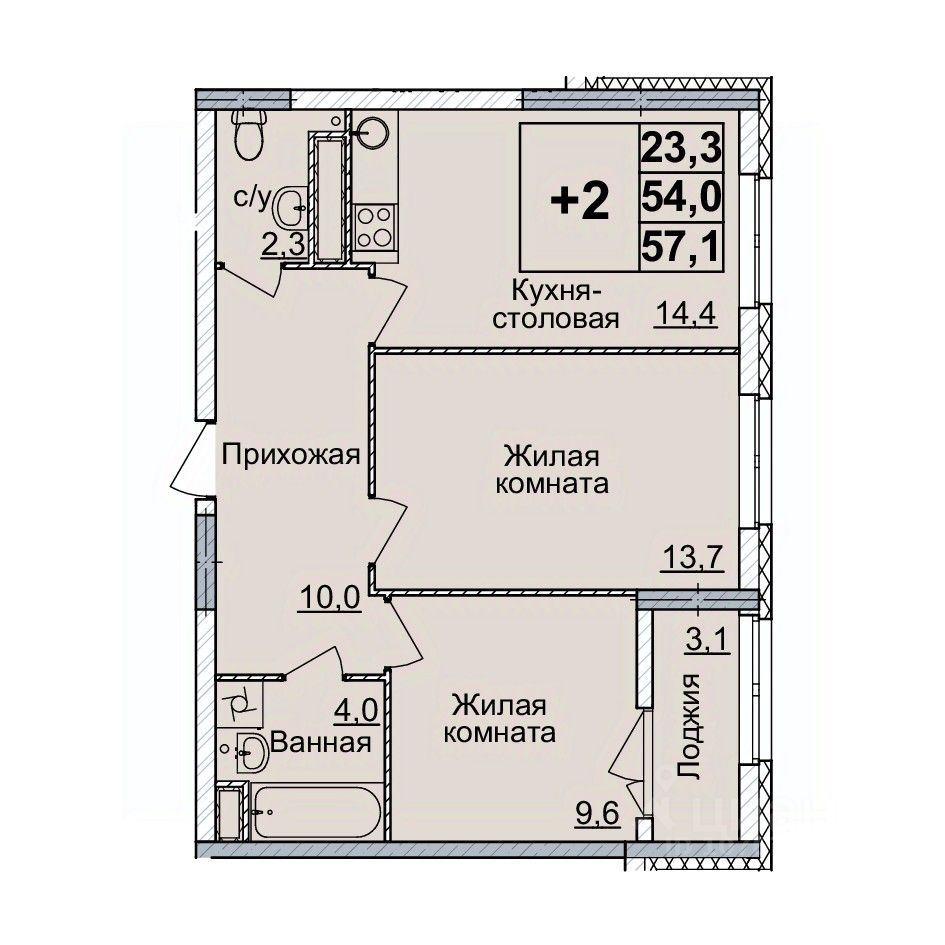 Общая площадь56 м2