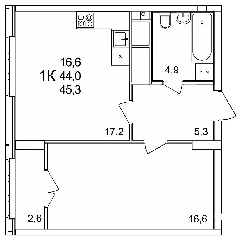 Продаётся 1-комнатная квартира в строящемся доме (51), срок сдачи: II-кв. 2026, общей площадью 45.3 кв.м., на 21 этаже. Расположение, транспортная доступность Жилой комплекс ''КМ Анкудиновский парк'' - это микрорайон, в состав которого входит 27 монолитно-кирпичных домов эконом-класса высотой 19-35 этажей, а также разнообразная инфраструктура. Жилой массив размещается на территории площадью 50 гектаров. Комплекс находится за пределами Нижнего Новгорода, в Кстовском районе, около деревни Анкудиновка. Город рядом - до него всего 6 километров. Без пробок до центральной части Нижнего Новгорода от комплекса можно добраться всего за двадцать минут. Поблизости находится улица Ларина, по которой можно быстро выехать на проспект Гагарина, ведущий в центр города. Специально для улучшения транспортной ситуации застройщик организовал рядом с корпусами микрорайона автобусные остановки, поэтому добраться до города можно будет быстро и тем, кто не пользуется личным автотранспортом. В десяти минутах ходьбы от комплекса находится железнодорожная платформа ''Анкудиновка'', от которой можно за час с небольшим доехать до Московского вокзала Нижнего Новгорода. Инфраструктура Собственная инфраструктура микрорайона ''КМ Анкудиновский парк'' включает в себя: несколько детских садов, общеобразовательную школу, бизнес-центр, торговый и физкультурно-оздоровительный комплексы. На первых этажах зданий располагаются офисные и коммерческие помещения. В посёлке Анкудиновка инфраструктуры не очень много, но в деревне Федяково (до которой от новостройки можно доехать за десять минут) работает крупный торговый центр ''Мега'' с гипермаркетами ''Ашан'', IKEA и OBI. По улице Ларина можно быстро доехать до центральной части Нижнего Новгорода, где расположено большое количество магазинов и торговых центров. Одно из главных достоинств ЖК ''КМ Анкудиновский парк'' - это экологичность места, в котором он располагается. По соседству находится огромный Анкудиновский парк (в честь которого назван комплекс) и Ботанический сад, где собрано множество редких растений (с мая по октябрь в саду работает Дендрарий с тропическими и субтропическими растениями). Недалеко располагается несколько лесных озёр и лесопарк ''Щёлковский хутор'', на территории которого есть Музей архитектуры и быта народов нижегородского Поволжья. Все крупные транспортные магистрали находятся на безопасном для качества воздуха расстоянии от микрорайона. У жителей ''Анкудиновского парка'' есть уникальная возможность жить за городом, в хороших экологических условиях, на свежем воздухе, и, в то же время, рядом с городом и всей необходимой инфраструктурой. Надёжность застройщика Жилой комплекс ''КМ Анкудиновский парк'' - это проект группы компаний ''Каркас Монолит'', которая начала свою деятельность на рынке недвижимости в 2000 году. В соответствии с названием, компания специализируется на монолитной строительной технологии, реализуя проекты как в сфере элитной недвижимости, так и в сфере жилья эконом-класса. Во всех своих проектах ГК