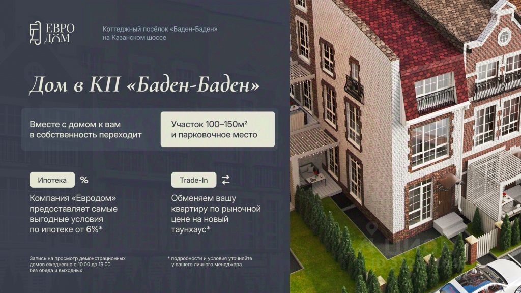 МЫ ПРОДАЕМ НЕ КВАДРАТНЫЕ МЕТРЫ, А ОБРАЗ ЖИЗНИ! Наши преимущества: - закрытая благоустроенная и безопасная территория для семьи и домашних животных, - современные детские площадки, - все коммуникации, рабочий газ, оптоволоконный интернет, - зона уличных фитнес-тренажеров для взрослых, шатер, - футбольное поле, - площадка для выгула и дрессировки собак, - зеленая территория, ландшафтный дизайн, сотни высаженных розовых кустов, - вывоз мусора, уборка снега с парковок, стрижка газонов, - охрана 24 часа в сутки, камеры видеонаблюдения, - гостевые парковки, - сервисная компания (НЕ ТСЖ) следит за чистотой и благоустройством поселка и организацией досуга для жителей, - крупнейший застройщик ПФО: 15 сданных проектов по малоэтажному строительству Стены толщиной 40 см с многослойной звукоизоляцией не пропускают ни звука. Дома выполнены из поротерма. Porotherm современный экологичный материал для строительства без утепления, позволяет поддерживать идеальный микроклимат круглый год. В таунхаусах зимой всегда тепло, а летом прохладно. Газовое отопление с индивидуальным котлом позволяет настраивать температуру под ваши предпочтения. Управляющая компания поселка круглосуточно заботиться о комфорте его жителей. В штате огромное количество специалистов, готовых в любой момент прийти на помощь. Есть собственное удобное мобильное приложение для быстрой связи с помощниками. Таунхаус это статус и уровень жизни, которые вы заслужили. Мы подберем оптимальное предложение для вашего образа жизни и предложим лучшие условия по ипотеке (ставка от 6% (семейная, IT, комбо), материнский капитал , рассрочка). Команда специалистов окажет поддержку и сопровождение при продаже старого жилья или предложит взять его в счет оплаты за дом в TRADE IN (готовы рассмотреть вашу недвижимость по рыночной цене). Все договора регистрируются в Росреестре и накладывается залог в пользу покупателя на земельный участок, все сделки застрахованы. Запись на ПРОСМОТР ЕЖЕДНЕВНО с 10: 00 - 19: 00 (без выходных!).