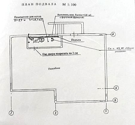 Подвал: котельная 5 м2, общее помещение.