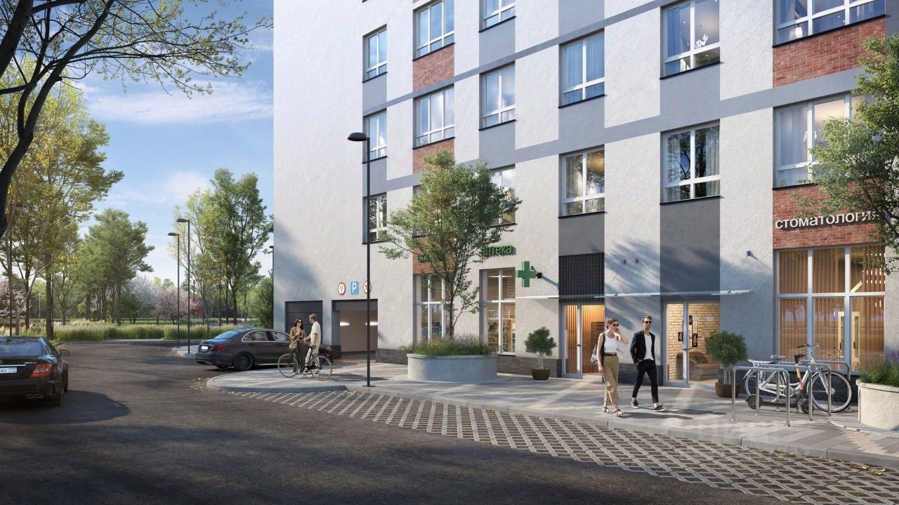 Благоустройство прилегающей территории включает в себя организацию детских игровых и спортивных площадок, гостевой автостоянки, а также озеленение. В непосредственной близости расположены детские сады, школы, медицинские учреждения, магазины, кафе, торговые и фитнес центры, а также парк.