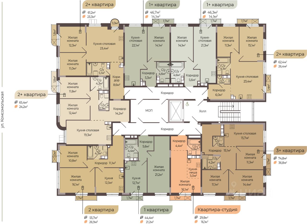 КВАРТИРА С ЧИСТОВОЙ ОТДЕЛКОЙ. ''Трио'' — это новый жилой комплекс комфорт-класса, который расположится на Комсомольской улице в Автозаводском районе Нижнего Новгорода. ЖК ''Трио'' состоит из трёх ярких одноподъездных корпусов. Высота каждого корпуса не превышает 8 этажей. А это значит, что дом будет ''камерный'', с небольшим количеством соседей, которые станут настоящими друзьями. В ЖК ''Трио'' запроектировано 7 видов планировочных решений площадью от 24,8 кв.м. до 89 кв.м. Всего в комплексе будет 200 квартир. Важным преимуществом является наличие кладовых, которые будут располагаться на 1 этаже. Благоустроенный закрытый двор с площадками для детей разных возрастов, зонами отдыха для взрослых и придомовой территорией с озеленением — станет любимым местом для прогулок. Для комфортного проживания и безопасности будущих жильцов в комплексе запроектировано 146 машиномест на прилегающей территории, что реализует концепцию жилого комплекса ''Двор без машин''. Приобретая квартиру в ЖК ''Трио'', вы обретаете новое качество жизни в уже сформировавшейся инфраструктуре, где в пешей доступности располагаются детские сады и школы, поликлиники и ветеринарные клиники, супермаркеты и торговые центры, остановки общественного транспорта, парикмахерские и т.д. Срок сдачи дома - 4 кв. 2026 г. Уточняйте подробные условия и наличие квартир в офисе продаж, записывайтесь на консультацию!
