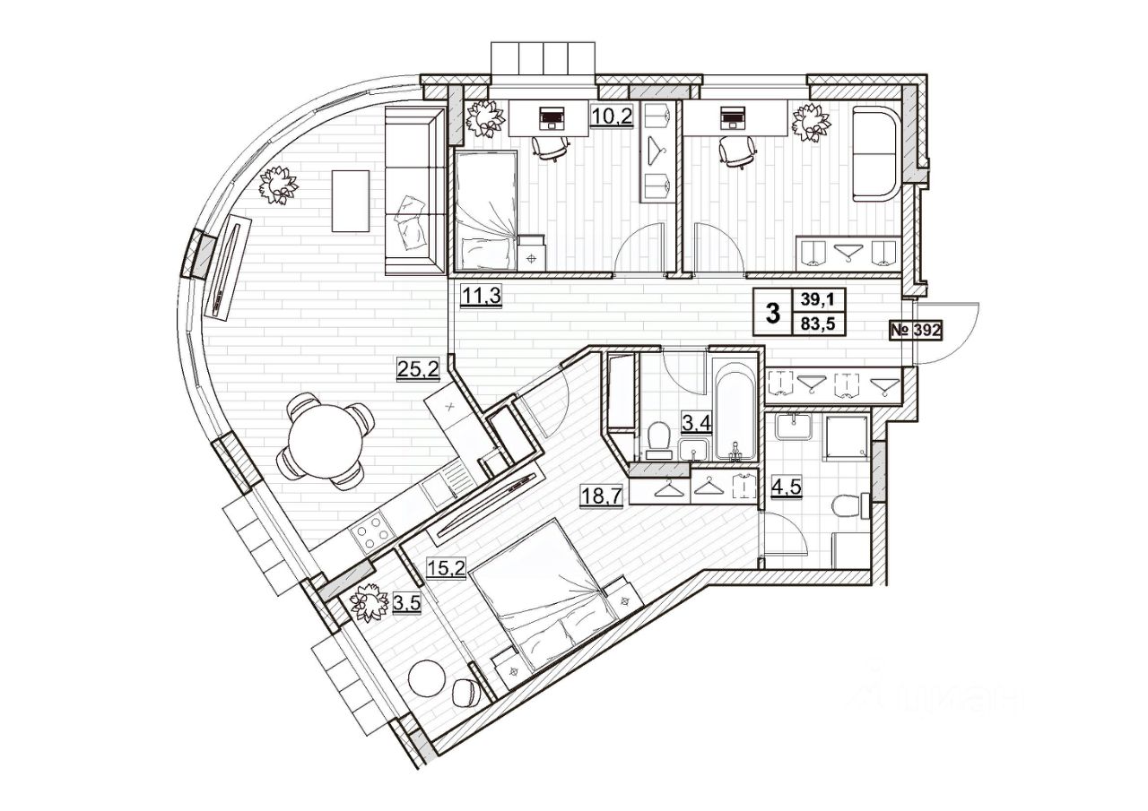 Общая площадь83,5 м2