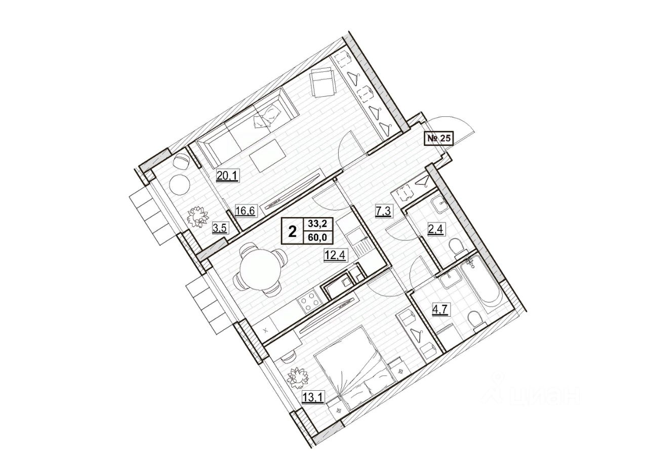 Общая площадь60 м2