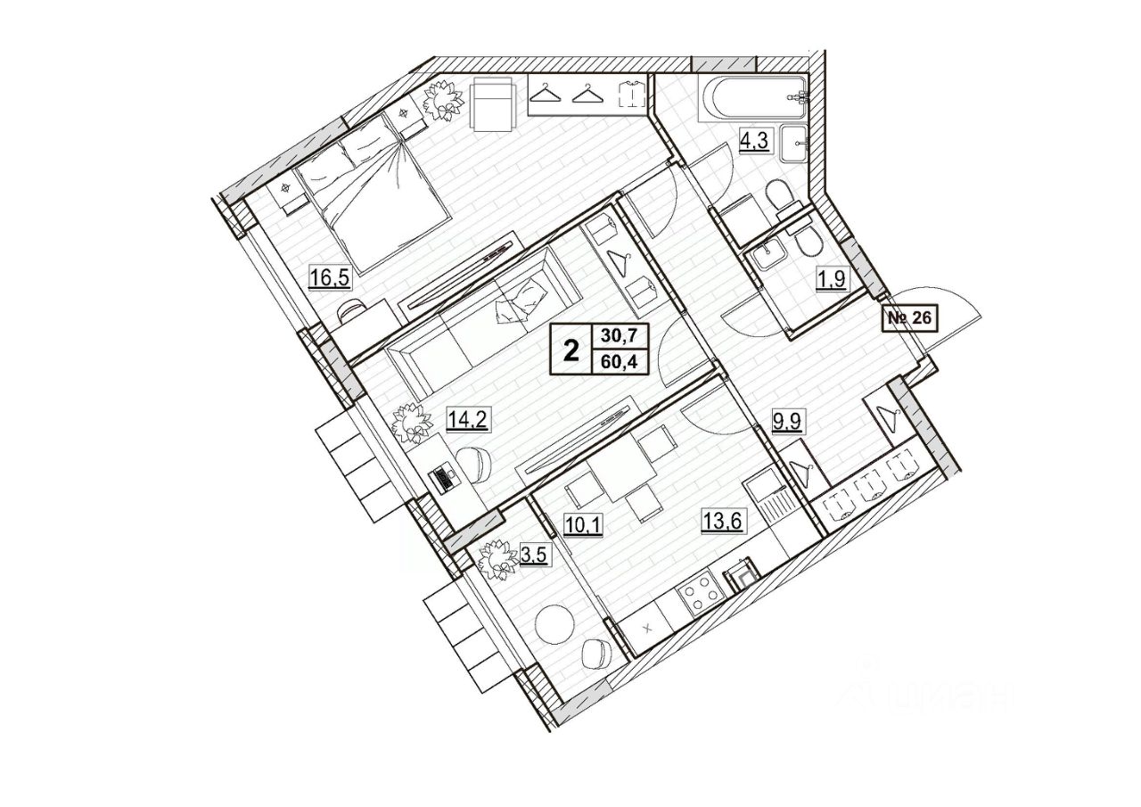 Общая площадь60,4 м2