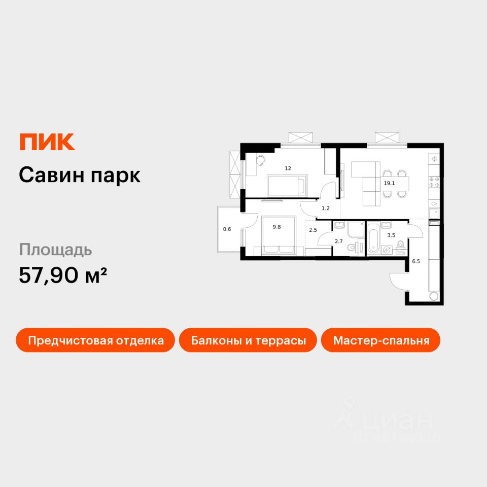 Продаётся 2-комн. квартира площадью 57,9 кв.м на 15 этаже 25 этажного дома (Корпус 8, Секция 1) проекта ПИК Савин парк. Светлый просторный подъезд на уровне земли, функциональная планировка, большие окна, предчистовая отделка.