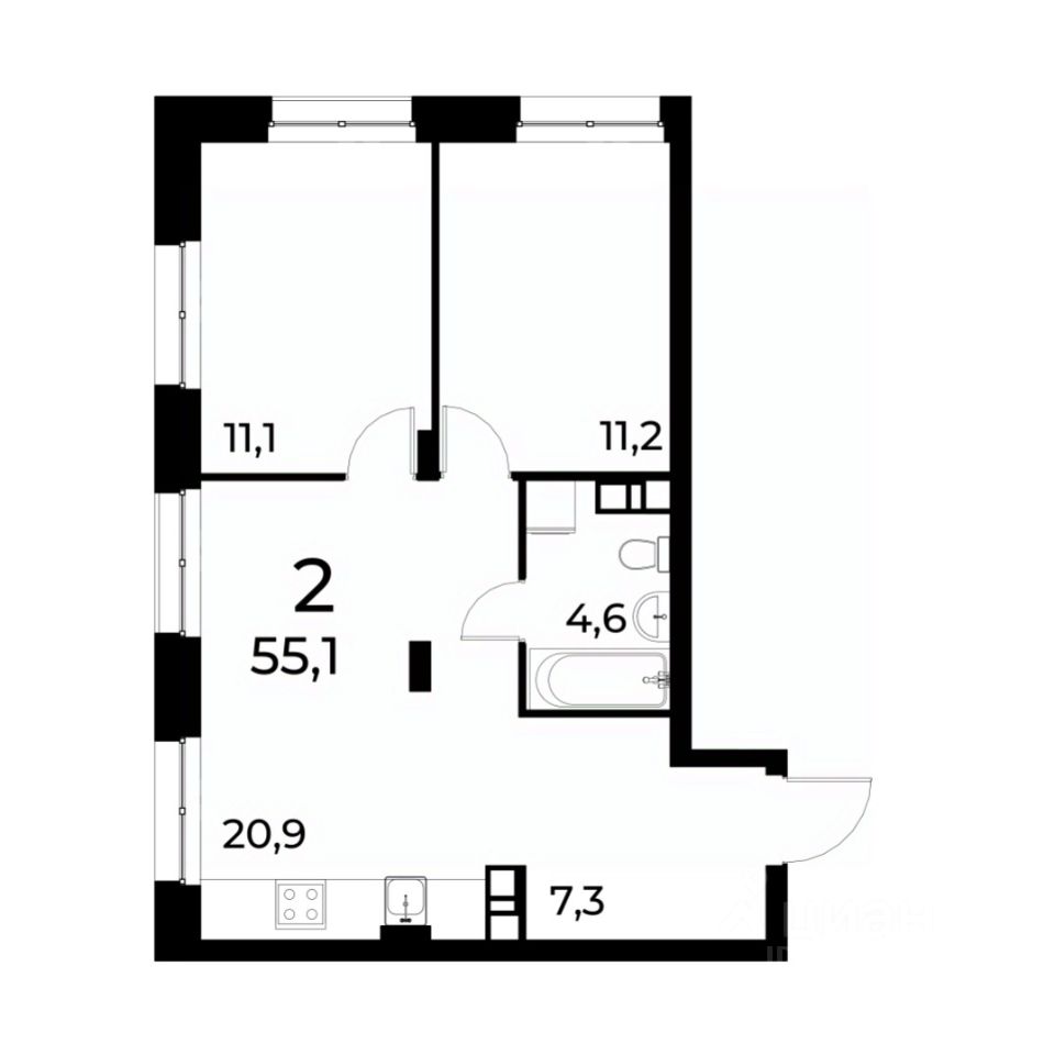 Общая площадь54,9 м2