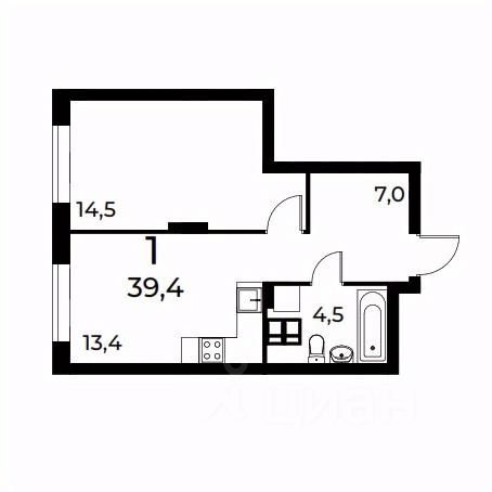 Общая площадь39,3 м2