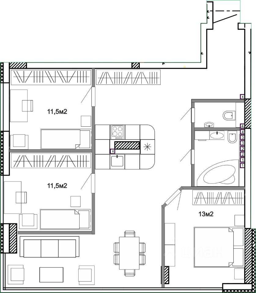 Свободная планировка позволяет разместить, как две, так и три комнаты и большую кухню-гостиную. Дом в современном стиле (два больших лифта, высота потолков 3 м). Отличное местоположение (магазины, остановки, школа, детск. площадки, парк и т.д.).