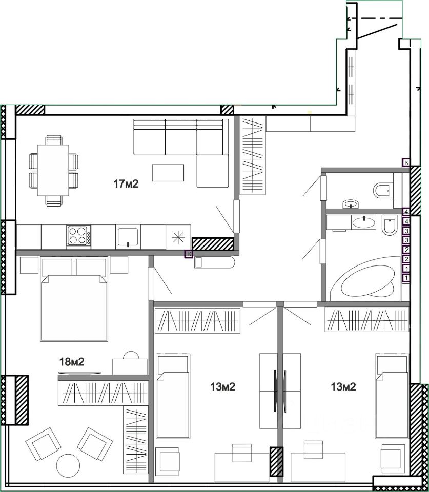 Квартира свободной планировки по адресу пр. Музрукова д. 13 корп. 1: