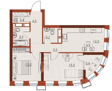 продам 2-к квартира11 460 681 ₽