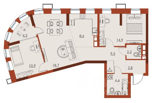 продам 3-к квартира15 846 900 ₽