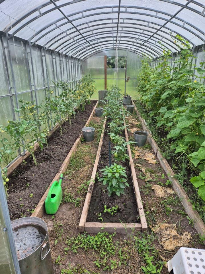 - На участке расположены: разнообразные плодово-ягодные деревья и кустарники, две теплицы, уютная беседка, освежающий бассейн и садовые качели для приятных вечеров.