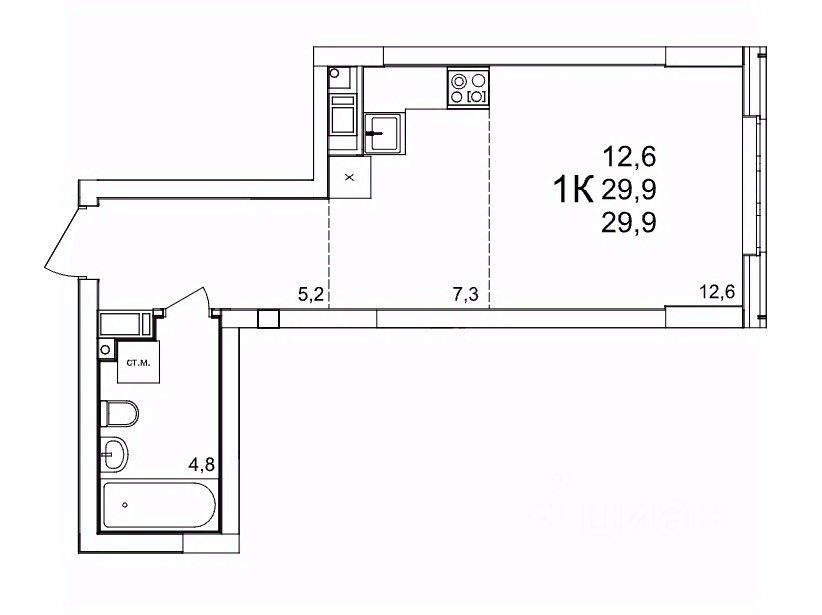 Общая площадь29,9 м2