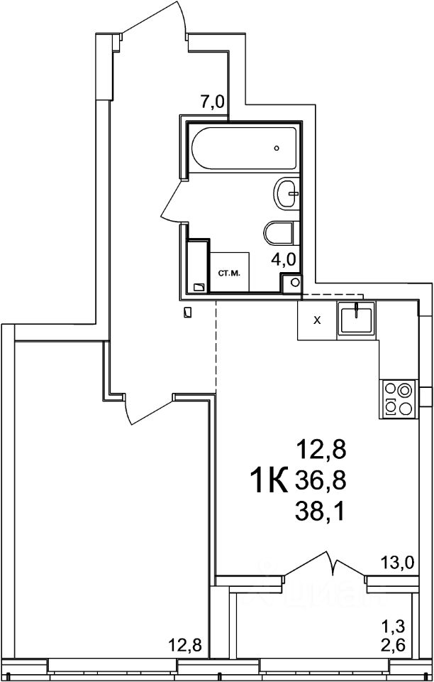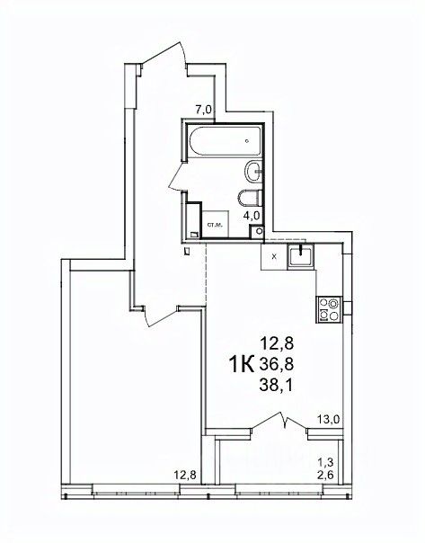 Общая площадь38,1 м2