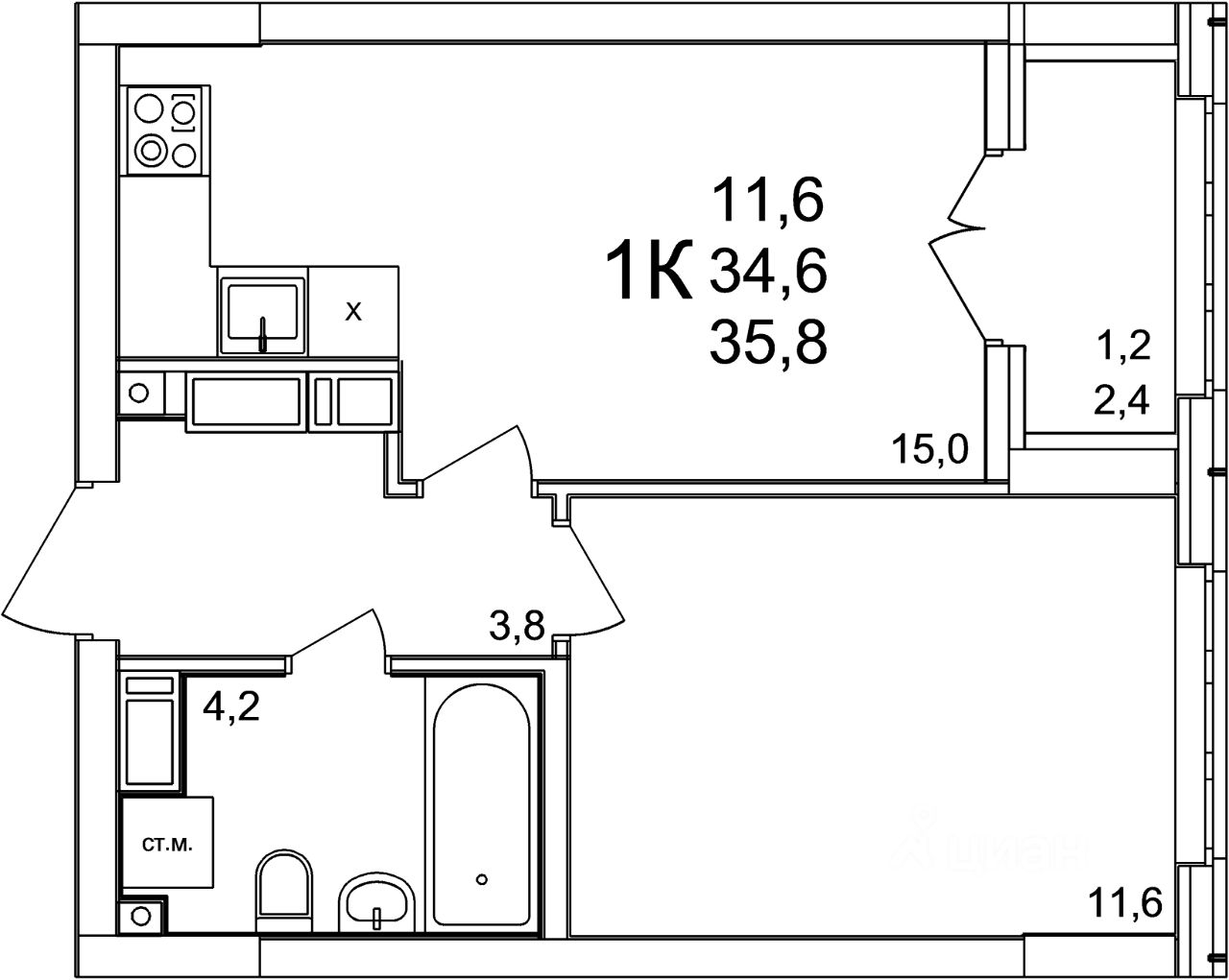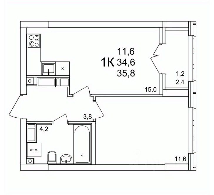 Общая площадь35,8 м2