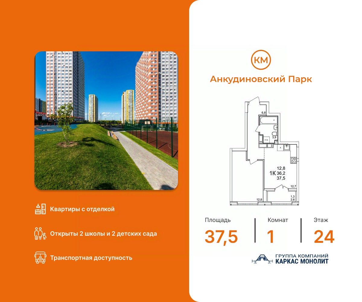 КМ Анкудиновский Парк — современный жилой комплекс, который уже стал полноценным районом для жизни. Здесь не нужно ждать, пока появится инфраструктура — всё уже есть и работает! Открыты 2 детских сада на 150 и 280 мест, 2 школы на 1350 местСетевые магазины, кафе и различные сервисыИгровые и спортивные площадки для детей и взрослыхПроектом предусмотрено строительство третьего детского сада, а также торгового центра, поликлиники и ФОКаОбщественный транспорт: несколько действующих маршрутов, на которых удобно добираться в разные части города Станьте жителем КМ Анкудиновский Парк и вы! Посетите наш шоурум и узнайте больше о выгодных предложениях и вариантах покупки в офисе продаж группы компаний Каркас Монолит.