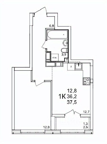 Общая площадь37,5 м2