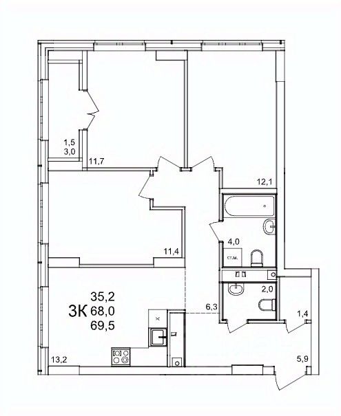 Общая площадь69,5 м2