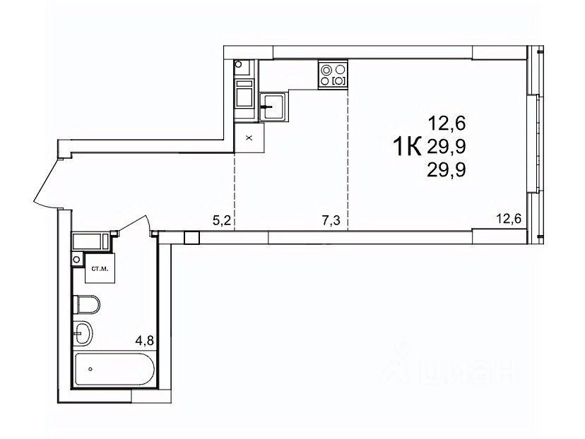 Общая площадь29,9 м2