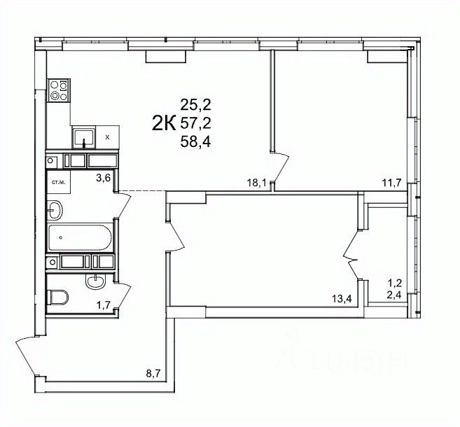 Продаётся 2-комнатная квартира в строящемся доме (53), срок сдачи: III-кв. 2027, общей площадью 58.4 кв.м., на 21 этаже. Расположение, транспортная доступность Жилой комплекс ''КМ Анкудиновский парк'' - это микрорайон, в состав которого входит 27 монолитно-кирпичных домов эконом-класса высотой 19-35 этажей, а также разнообразная инфраструктура. Жилой массив размещается на территории площадью 50 гектаров. Комплекс находится за пределами Нижнего Новгорода, в Кстовском районе, около деревни Анкудиновка. Город рядом - до него всего 6 километров. Без пробок до центральной части Нижнего Новгорода от комплекса можно добраться всего за двадцать минут. Поблизости находится улица Ларина, по которой можно быстро выехать на проспект Гагарина, ведущий в центр города. Специально для улучшения транспортной ситуации застройщик организовал рядом с корпусами микрорайона автобусные остановки, поэтому добраться до города можно будет быстро и тем, кто не пользуется личным автотранспортом. В десяти минутах ходьбы от комплекса находится железнодорожная платформа ''Анкудиновка'', от которой можно за час с небольшим доехать до Московского вокзала Нижнего Новгорода. Инфраструктура Собственная инфраструктура микрорайона ''КМ Анкудиновский парк'' включает в себя: несколько детских садов, общеобразовательную школу, бизнес-центр, торговый и физкультурно-оздоровительный комплексы. На первых этажах зданий располагаются офисные и коммерческие помещения. В посёлке Анкудиновка инфраструктуры не очень много, но в деревне Федяково (до которой от новостройки можно доехать за десять минут) работает крупный торговый центр ''Мега'' с гипермаркетами ''Ашан'', IKEA и OBI. По улице Ларина можно быстро доехать до центральной части Нижнего Новгорода, где расположено большое количество магазинов и торговых центров. Одно из главных достоинств ЖК ''КМ Анкудиновский парк'' - это экологичность места, в котором он располагается. По соседству находится огромный Анкудиновский парк (в честь которого назван комплекс) и Ботанический сад, где собрано множество редких растений (с мая по октябрь в саду работает Дендрарий с тропическими и субтропическими растениями). Недалеко располагается несколько лесных озёр и лесопарк ''Щёлковский хутор'', на территории которого есть Музей архитектуры и быта народов нижегородского Поволжья. Все крупные транспортные магистрали находятся на безопасном для качества воздуха расстоянии от микрорайона. У жителей ''Анкудиновского парка'' есть уникальная возможность жить за городом, в хороших экологических условиях, на свежем воздухе, и, в то же время, рядом с городом и всей необходимой инфраструктурой. Надёжность застройщика Жилой комплекс ''КМ Анкудиновский парк'' - это проект группы компаний ''Каркас Монолит'', которая начала свою деятельность на рынке недвижимости в 2000 году. В соответствии с названием, компания специализируется на монолитной строительной технологии, реализуя проекты как в сфере элитной недвижимости, так и в сфере жилья эконом-класса. Во всех своих проектах ГК
