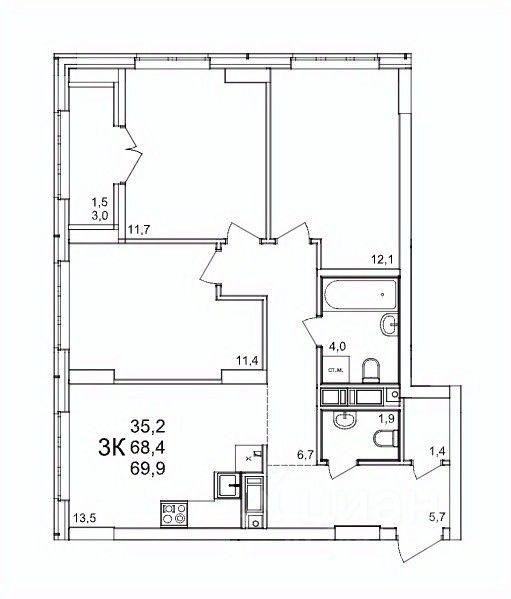 Общая площадь69,9 м2