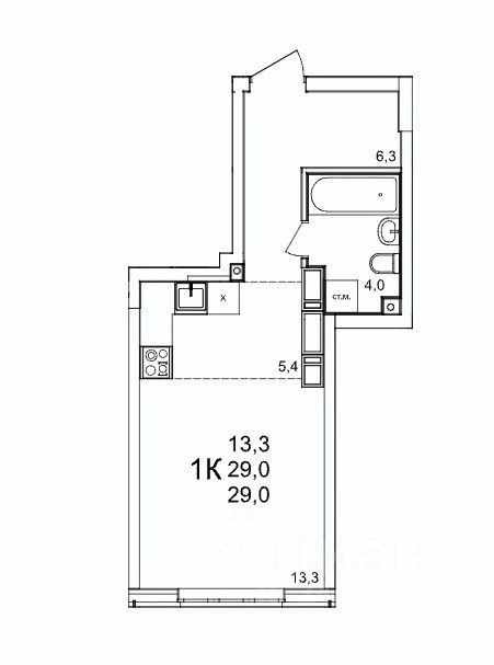 Общая площадь29 м2