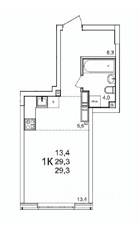 Общая площадь29,3 м2
