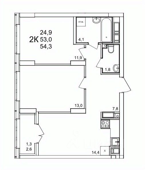 Продаётся 2-комнатная квартира в строящемся доме (53), срок сдачи: III-кв. 2027, общей площадью 54.3 кв.м., на 25 этаже. Расположение, транспортная доступность Жилой комплекс ''КМ Анкудиновский парк'' - это микрорайон, в состав которого входит 27 монолитно-кирпичных домов эконом-класса высотой 19-35 этажей, а также разнообразная инфраструктура. Жилой массив размещается на территории площадью 50 гектаров. Комплекс находится за пределами Нижнего Новгорода, в Кстовском районе, около деревни Анкудиновка. Город рядом - до него всего 6 километров. Без пробок до центральной части Нижнего Новгорода от комплекса можно добраться всего за двадцать минут. Поблизости находится улица Ларина, по которой можно быстро выехать на проспект Гагарина, ведущий в центр города. Специально для улучшения транспортной ситуации застройщик организовал рядом с корпусами микрорайона автобусные остановки, поэтому добраться до города можно будет быстро и тем, кто не пользуется личным автотранспортом. В десяти минутах ходьбы от комплекса находится железнодорожная платформа ''Анкудиновка'', от которой можно за час с небольшим доехать до Московского вокзала Нижнего Новгорода. Инфраструктура Собственная инфраструктура микрорайона ''КМ Анкудиновский парк'' включает в себя: несколько детских садов, общеобразовательную школу, бизнес-центр, торговый и физкультурно-оздоровительный комплексы. На первых этажах зданий располагаются офисные и коммерческие помещения. В посёлке Анкудиновка инфраструктуры не очень много, но в деревне Федяково (до которой от новостройки можно доехать за десять минут) работает крупный торговый центр ''Мега'' с гипермаркетами ''Ашан'', IKEA и OBI. По улице Ларина можно быстро доехать до центральной части Нижнего Новгорода, где расположено большое количество магазинов и торговых центров. Одно из главных достоинств ЖК ''КМ Анкудиновский парк'' - это экологичность места, в котором он располагается. По соседству находится огромный Анкудиновский парк (в честь которого назван комплекс) и Ботанический сад, где собрано множество редких растений (с мая по октябрь в саду работает Дендрарий с тропическими и субтропическими растениями). Недалеко располагается несколько лесных озёр и лесопарк ''Щёлковский хутор'', на территории которого есть Музей архитектуры и быта народов нижегородского Поволжья. Все крупные транспортные магистрали находятся на безопасном для качества воздуха расстоянии от микрорайона. У жителей ''Анкудиновского парка'' есть уникальная возможность жить за городом, в хороших экологических условиях, на свежем воздухе, и, в то же время, рядом с городом и всей необходимой инфраструктурой. Надёжность застройщика Жилой комплекс ''КМ Анкудиновский парк'' - это проект группы компаний ''Каркас Монолит'', которая начала свою деятельность на рынке недвижимости в 2000 году. В соответствии с названием, компания специализируется на монолитной строительной технологии, реализуя проекты как в сфере элитной недвижимости, так и в сфере жилья эконом-класса. Во всех своих проектах ГК