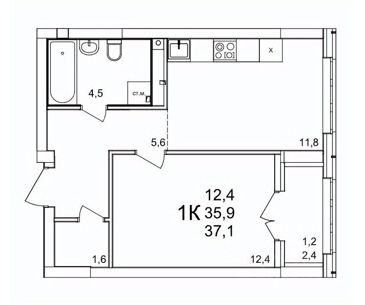 Общая площадь37,1 м2