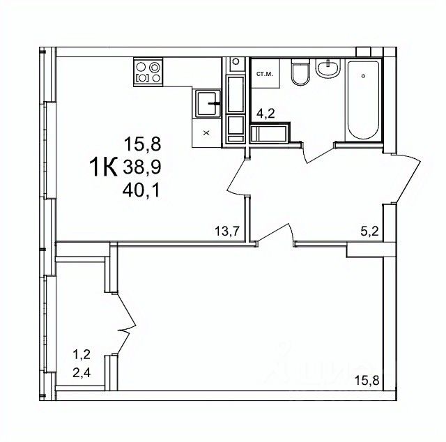 Общая площадь40,1 м2