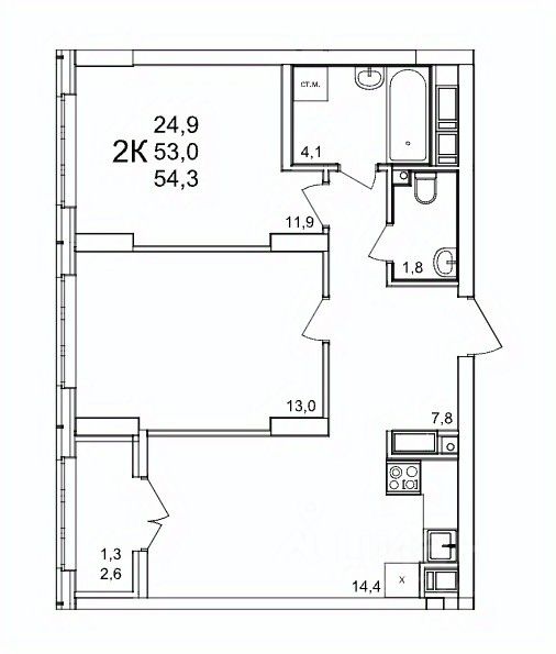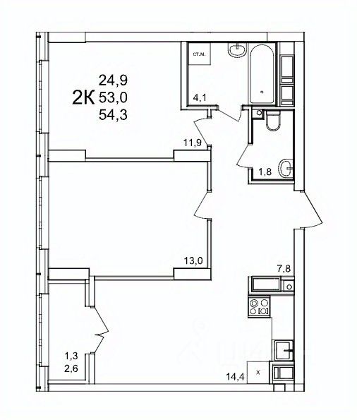 Продаётся 2-комнатная квартира в строящемся доме (53), срок сдачи: III-кв. 2027, общей площадью 54.3 кв.м., на 22 этаже. Расположение, транспортная доступность Жилой комплекс ''КМ Анкудиновский парк'' - это микрорайон, в состав которого входит 27 монолитно-кирпичных домов эконом-класса высотой 19-35 этажей, а также разнообразная инфраструктура. Жилой массив размещается на территории площадью 50 гектаров. Комплекс находится за пределами Нижнего Новгорода, в Кстовском районе, около деревни Анкудиновка. Город рядом - до него всего 6 километров. Без пробок до центральной части Нижнего Новгорода от комплекса можно добраться всего за двадцать минут. Поблизости находится улица Ларина, по которой можно быстро выехать на проспект Гагарина, ведущий в центр города. Специально для улучшения транспортной ситуации застройщик организовал рядом с корпусами микрорайона автобусные остановки, поэтому добраться до города можно будет быстро и тем, кто не пользуется личным автотранспортом. В десяти минутах ходьбы от комплекса находится железнодорожная платформа ''Анкудиновка'', от которой можно за час с небольшим доехать до Московского вокзала Нижнего Новгорода. Инфраструктура Собственная инфраструктура микрорайона ''КМ Анкудиновский парк'' включает в себя: несколько детских садов, общеобразовательную школу, бизнес-центр, торговый и физкультурно-оздоровительный комплексы. На первых этажах зданий располагаются офисные и коммерческие помещения. В посёлке Анкудиновка инфраструктуры не очень много, но в деревне Федяково (до которой от новостройки можно доехать за десять минут) работает крупный торговый центр ''Мега'' с гипермаркетами ''Ашан'', IKEA и OBI. По улице Ларина можно быстро доехать до центральной части Нижнего Новгорода, где расположено большое количество магазинов и торговых центров. Одно из главных достоинств ЖК ''КМ Анкудиновский парк'' - это экологичность места, в котором он располагается. По соседству находится огромный Анкудиновский парк (в честь которого назван комплекс) и Ботанический сад, где собрано множество редких растений (с мая по октябрь в саду работает Дендрарий с тропическими и субтропическими растениями). Недалеко располагается несколько лесных озёр и лесопарк ''Щёлковский хутор'', на территории которого есть Музей архитектуры и быта народов нижегородского Поволжья. Все крупные транспортные магистрали находятся на безопасном для качества воздуха расстоянии от микрорайона. У жителей ''Анкудиновского парка'' есть уникальная возможность жить за городом, в хороших экологических условиях, на свежем воздухе, и, в то же время, рядом с городом и всей необходимой инфраструктурой. Надёжность застройщика Жилой комплекс ''КМ Анкудиновский парк'' - это проект группы компаний ''Каркас Монолит'', которая начала свою деятельность на рынке недвижимости в 2000 году. В соответствии с названием, компания специализируется на монолитной строительной технологии, реализуя проекты как в сфере элитной недвижимости, так и в сфере жилья эконом-класса. Во всех своих проектах ГК
