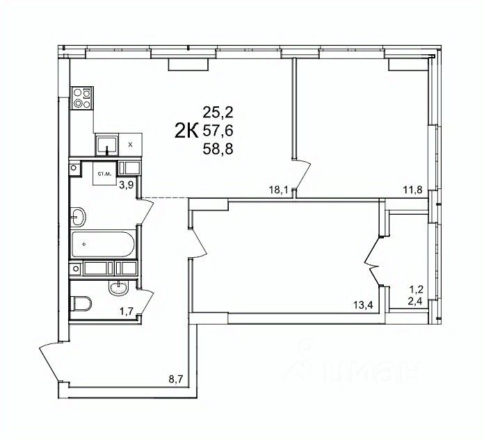 Продаётся 2-комнатная квартира в строящемся доме (53), срок сдачи: III-кв. 2027, общей площадью 58.8 кв.м., на 7 этаже. Расположение, транспортная доступность Жилой комплекс ''КМ Анкудиновский парк'' - это микрорайон, в состав которого входит 27 монолитно-кирпичных домов эконом-класса высотой 19-35 этажей, а также разнообразная инфраструктура. Жилой массив размещается на территории площадью 50 гектаров. Комплекс находится за пределами Нижнего Новгорода, в Кстовском районе, около деревни Анкудиновка. Город рядом - до него всего 6 километров. Без пробок до центральной части Нижнего Новгорода от комплекса можно добраться всего за двадцать минут. Поблизости находится улица Ларина, по которой можно быстро выехать на проспект Гагарина, ведущий в центр города. Специально для улучшения транспортной ситуации застройщик организовал рядом с корпусами микрорайона автобусные остановки, поэтому добраться до города можно будет быстро и тем, кто не пользуется личным автотранспортом. В десяти минутах ходьбы от комплекса находится железнодорожная платформа ''Анкудиновка'', от которой можно за час с небольшим доехать до Московского вокзала Нижнего Новгорода. Инфраструктура Собственная инфраструктура микрорайона ''КМ Анкудиновский парк'' включает в себя: несколько детских садов, общеобразовательную школу, бизнес-центр, торговый и физкультурно-оздоровительный комплексы. На первых этажах зданий располагаются офисные и коммерческие помещения. В посёлке Анкудиновка инфраструктуры не очень много, но в деревне Федяково (до которой от новостройки можно доехать за десять минут) работает крупный торговый центр ''Мега'' с гипермаркетами ''Ашан'', IKEA и OBI. По улице Ларина можно быстро доехать до центральной части Нижнего Новгорода, где расположено большое количество магазинов и торговых центров. Одно из главных достоинств ЖК ''КМ Анкудиновский парк'' - это экологичность места, в котором он располагается. По соседству находится огромный Анкудиновский парк (в честь которого назван комплекс) и Ботанический сад, где собрано множество редких растений (с мая по октябрь в саду работает Дендрарий с тропическими и субтропическими растениями). Недалеко располагается несколько лесных озёр и лесопарк ''Щёлковский хутор'', на территории которого есть Музей архитектуры и быта народов нижегородского Поволжья. Все крупные транспортные магистрали находятся на безопасном для качества воздуха расстоянии от микрорайона. У жителей ''Анкудиновского парка'' есть уникальная возможность жить за городом, в хороших экологических условиях, на свежем воздухе, и, в то же время, рядом с городом и всей необходимой инфраструктурой. Надёжность застройщика Жилой комплекс ''КМ Анкудиновский парк'' - это проект группы компаний ''Каркас Монолит'', которая начала свою деятельность на рынке недвижимости в 2000 году. В соответствии с названием, компания специализируется на монолитной строительной технологии, реализуя проекты как в сфере элитной недвижимости, так и в сфере жилья эконом-класса. Во всех своих проектах ГК