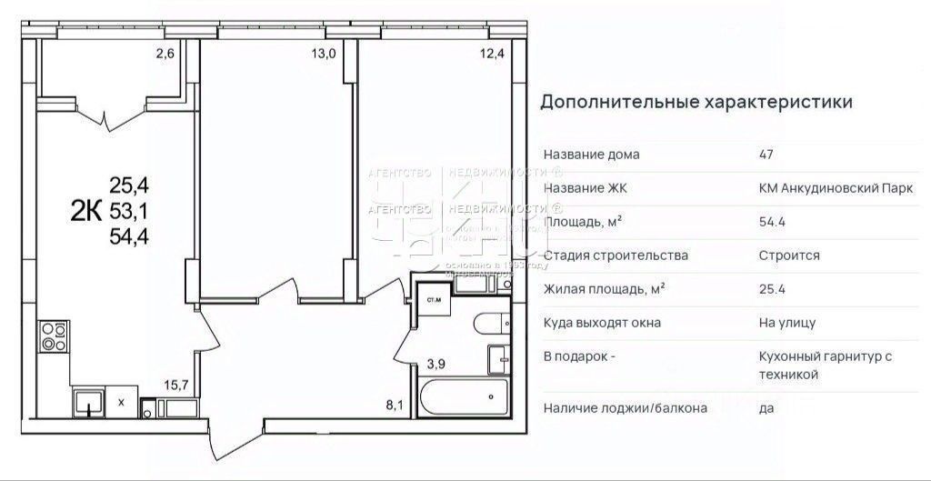 Предлагаем Вашему вниманию рассмотреть прекрасную двухкомнатную квартиру в динамично развивающемся ЖК ''Анкудиновский Парк''! Срок сдачи 3 квартал 2026 года. Это отличный вариант для тех, кто ценит комфорт, функциональность и удобное расположение. Квартира будет полностью готова к проживанию, Вам не придется тратить время и средства на обустройство. Заезжайте и наслаждайтесь жизнью! ''Анкудиновский Парк'' это современный микрорайон с развитой инфраструктурой. Здесь есть все необходимое для комфортной жизни: магазины, школы, детские сады, спортивные площадки и многое другое. Удобная транспортная развязка позволит Вам быстро добраться в любую точку города. Расположение квартиры вблизи Щёлковского хутора это еще один неоспоримый плюс. Здесь Вы сможете наслаждаться свежим воздухом, прогулками по лесу и активным отдыхом на природе. Это прекрасное место для восстановления сил и гармонии с собой. Общая площадь квартиры с лоджией 54,4 м2, кухня 15,7 м2, две комнаты: 13 м2 и 12,4 м2, теплая лоджия 2,6 м2. Квартира будет сдана застройщиком полностью с качественным ремонтом и кухонным гарнитуром с техникой. Санузел будет полностью облицован качественной плиткой и оборудован унитазом, раковиной с тумбой и ванной. Не упустите свой шанс стать обладателем просторной и функциональной квартиры в одном из самых перспективных районов города! Застройщик предлагает возможность рассрочки до ввода объекта в эксплуатацию, а также систему скидок: 5% при оплате сразу (цена квартиры с учетом скидки 9095680 руб.), 5% для иногородних, 7% для семей с 3-мя детьми и 10% для участников СВО! Торопитесь, акции скоро заканчиваются! Агентство недвижимости ЧЕКНИ является официальным партнером застройщика. Бронируя квартиру (по цене застройщика) через нас, Вы абсолютно бесплатно получаете: консультацию по подбору квартиры под Ваши потребности и финансовые возможности, сопровождение до застройщика, дополнительные скидки! Звоните прямо сейчас, чтобы забронировать это уникальное предложение! Мы уверены, что эта квартира станет Вашим идеальным домом!
