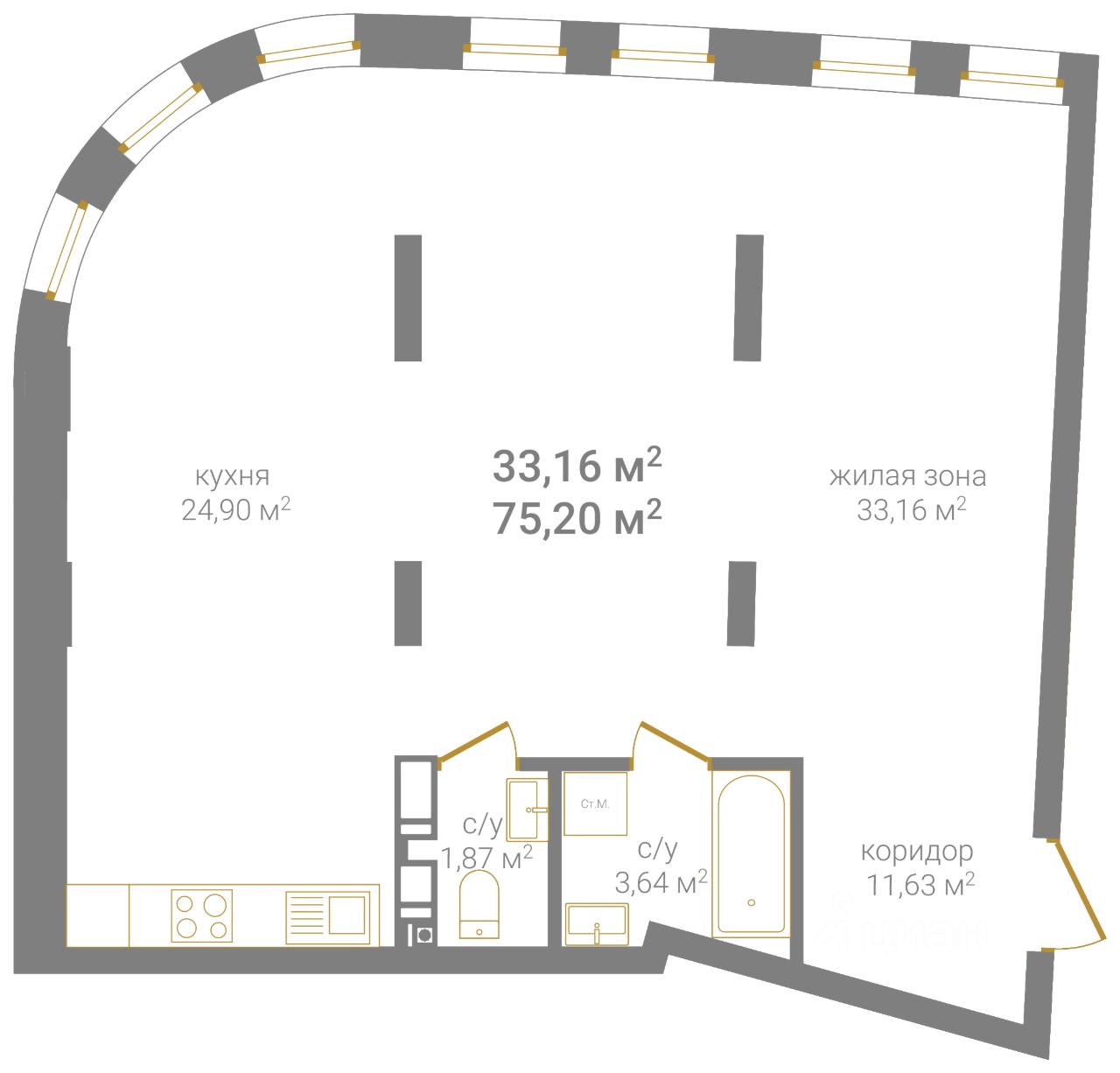 Общая площадь75,2 м2