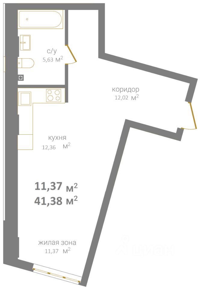 Общая площадь41,38 м2
