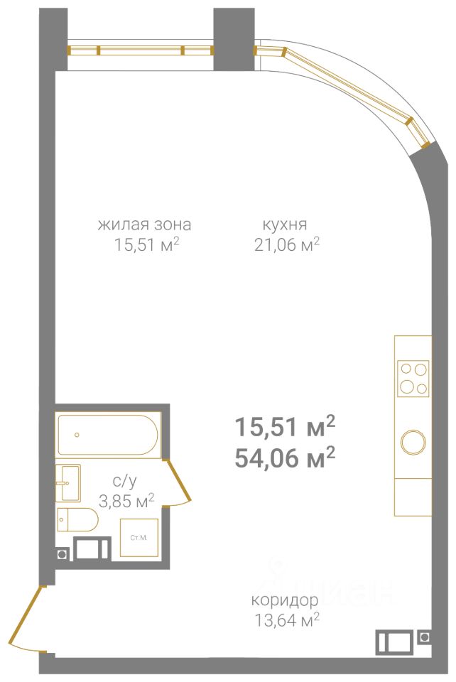 Общая площадь54,06 м2