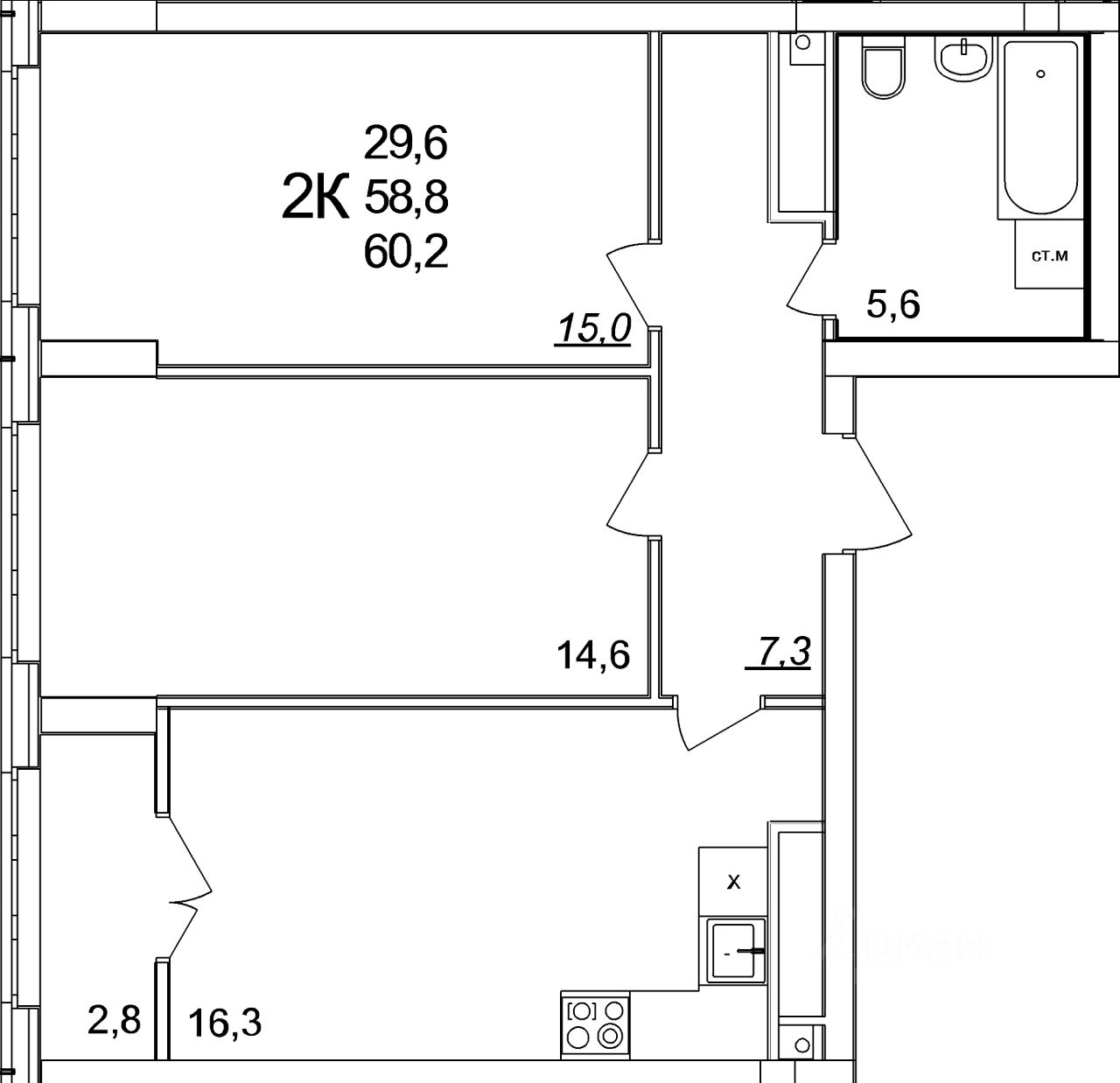 Ванная комната подвесная раковина с тумбойбелоснежная акриловая ваннаэлектрический полотенцесушительунитаз-компактстены и пол в керамической плиткеточечные светильники на потолкеКухня светлый кухонный гарнитурвстроенные духовой шкаф и варочная панельраковина и смеситель уже установленыпол — ламинат 32 классаКомнаты белые обои под покраску (легко обновить интерьер в любом стиле)надёжный ламинат 32 классашпонированные межкомнатные двериПрихожая износостойкий керамогранит в цвет дерева О комплексе: