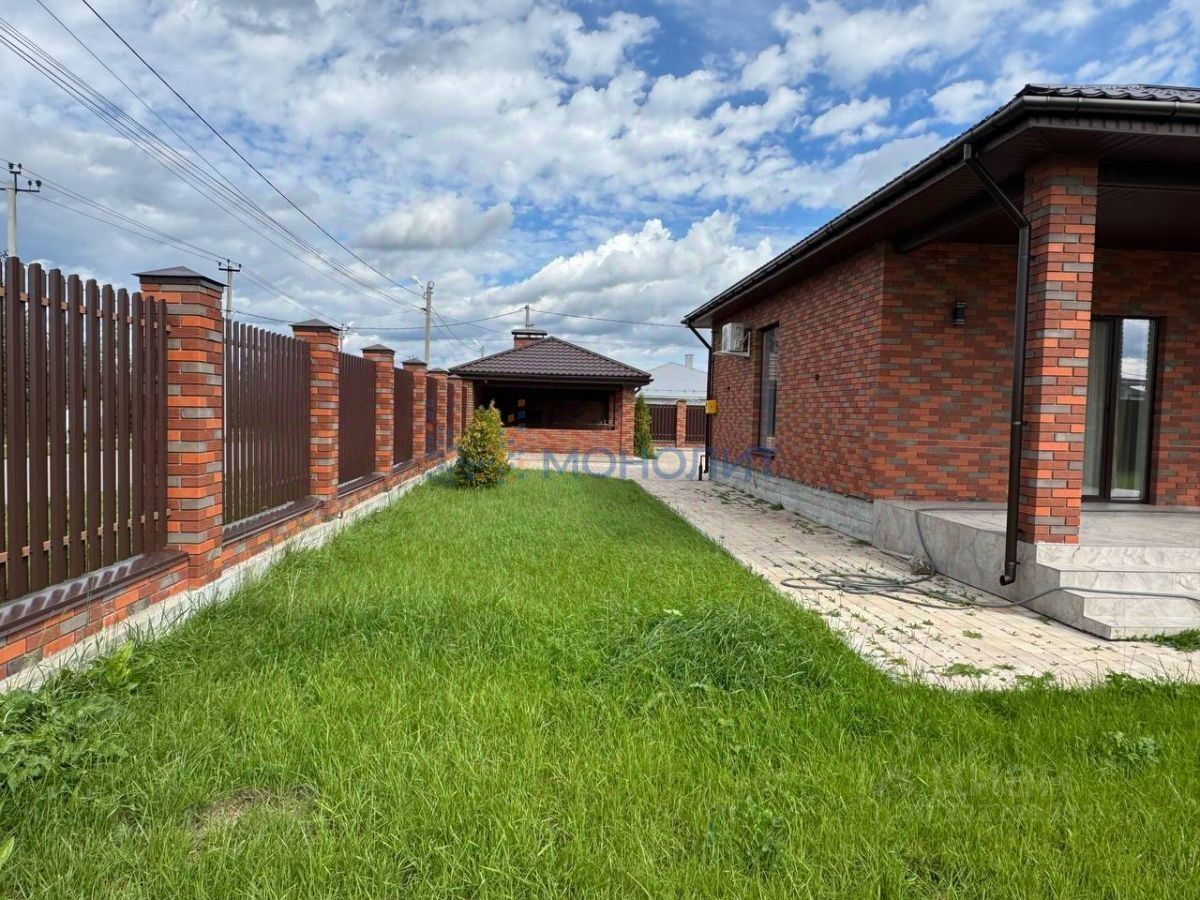 Территория перед домом и отмостка выложена брусчаткой. Участок выровнен засеян газоном и облагорожен насаждениями.