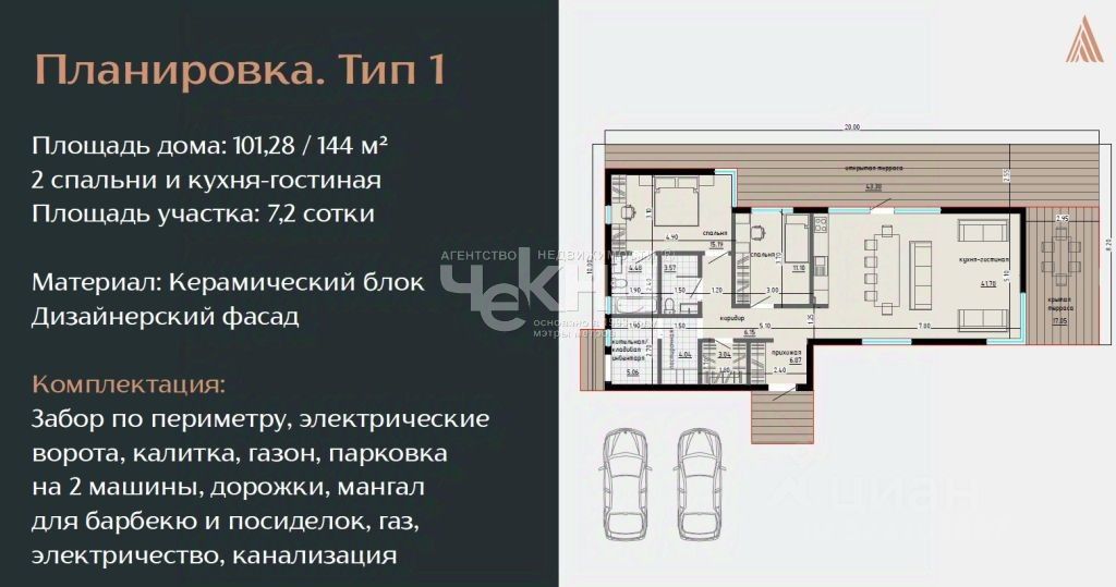 Предлагаем Вашему вниманию прекрасный будущий дом площадью 101,28 м2 (с учетом открытой и крытой терассы 144 м2) в клубном посёлке спа-резиденция Лес, расположенном возле деревни Лапшиха, Дальнеконстантиновского района, всего в 48 километрах от Нижнего Новгорода. Это больше чем просто поселок это стиль жизни. Эксклюзивный загородный проект объединил в себе лучшее, качественный уровень жизни и приватность закрытого комьюнити. Место для тех, кто выбирает комфорт без компромиссов. Благоустроенная охраняемая территория, бассейн, сауна, коворкинг, магазин, кофейня, площадки для йоги и фитнеса, баскетбольная площадка, воркаут-площадка, детский клуб, прогулочные зоны, зона для барбекю с друзьями и природа - всё для баланса между делами и жизнью. Здесь живут, работают и отдыхают в ритме, который задают сами. Для кого создан этот проект: Тем, кто устал от городской суеты, но не готов жертвовать комфортом и статусом. Если хочется приватности и спокойной жизни. Основные преимущества данного проекта: Приватность без компромиссов (закрытая территория, единая социальная среда), Экологически чистое место рядом с заповедным лесом, Благоустроенная территория и единая архитектурная концепция, Инфраструктура премиум-класса, которой пользуетесь Вы и Ваши гости (разнообразные зоны отдыха, общий бассейн с подогревом, комфортное деловое пространство), Инвестиционная привлекательность (отсутствие аналогичных проектов в регионе, эксклюзивная инфраструктура привлекательна для платежеспособных клиентов), Безопасность и сервис (контрольно-пропускной пункт с охраной 24/7, видеонаблюдение по периметру, своя управляющая компания и консьерж-служба с высокими стандартами сервиса, правила проживания обеспечивают комфорт и спокойствие). Представленный дом имеет 2 спальни, гардеробную, 2 санузла, постирочную, котельную, кухну-гостиную, открытую террасу площадью 43,38 м2 и крытую террасу площадью 17,05 м2. Материал строительства: крупногабаритный керамический блок, вентилируемый фасад, декоративные панели. Размер участка: 7,2 сотки. Сети: электричество 15 кВт, вода индивидуальная скважина с системной фильтрации, газ централизованный заведенный в дом в комплектации White/Luxe, подведенный к дому в комплектации Basic, канализация индивидуальные системы очистки на участке. Благоустроенный двор передается с забором по периметру (высота 1,8 м, металлический евтоштакетник под дерево), калитка, автоматические ворота, парковка на 2 места, газон, мангал для посиделок. Можно докупить дополнительные опции: баня, бассейн, купель. Дома передаются в выбранной комплектации, подключенными сетями, благоустроенным двором, после того как весь поселок будет полностью построен и благоустроен. Срок готовности проекта 4 кв 2027 года, выдача ключей до конца 1 кв 2028. Дом можно приобрести на условиях полной оплаты или рассрочки от застройщика. Рассрочка от 20% сроком до 24 месяцев. При оплате аванса 50% и полной оплате до 31.12.2025 Вы можете получить скидку от 2% до 5%. Звоните, бронируйте и станьте участником этого уникального проекта!!!